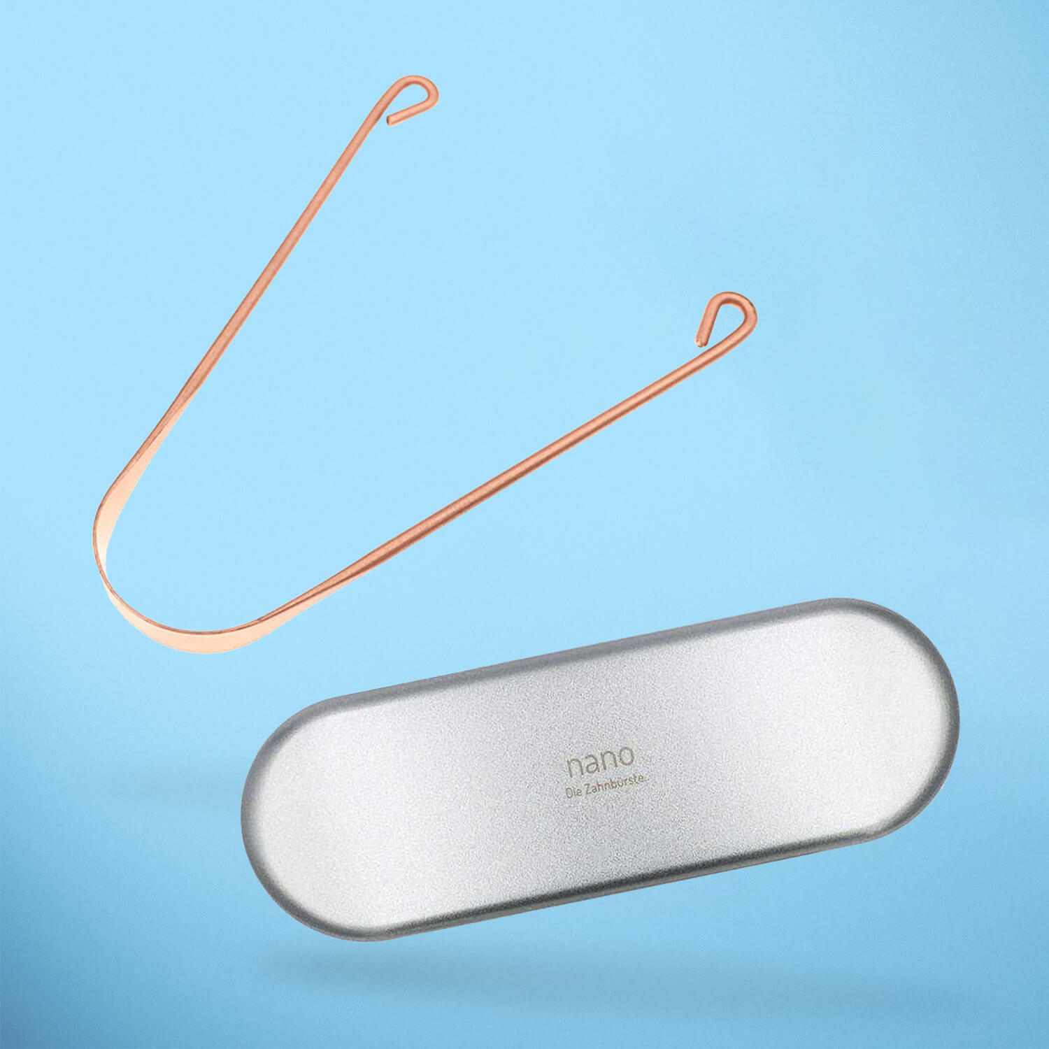 Saubere Zunge für frischen Atem. Die Reinigung der Zunge gehört zur Mundhygiene genauso wie das Zähneputzen. Mit dem nano. Zungenreiniger. aus 100% reinem Kupfer entfernst Du die Beläge gründlich. Dank seiner natürlichen antibakteriellen Wirkung, ist Kupfer das ideale Material für die Zungenreinigung.